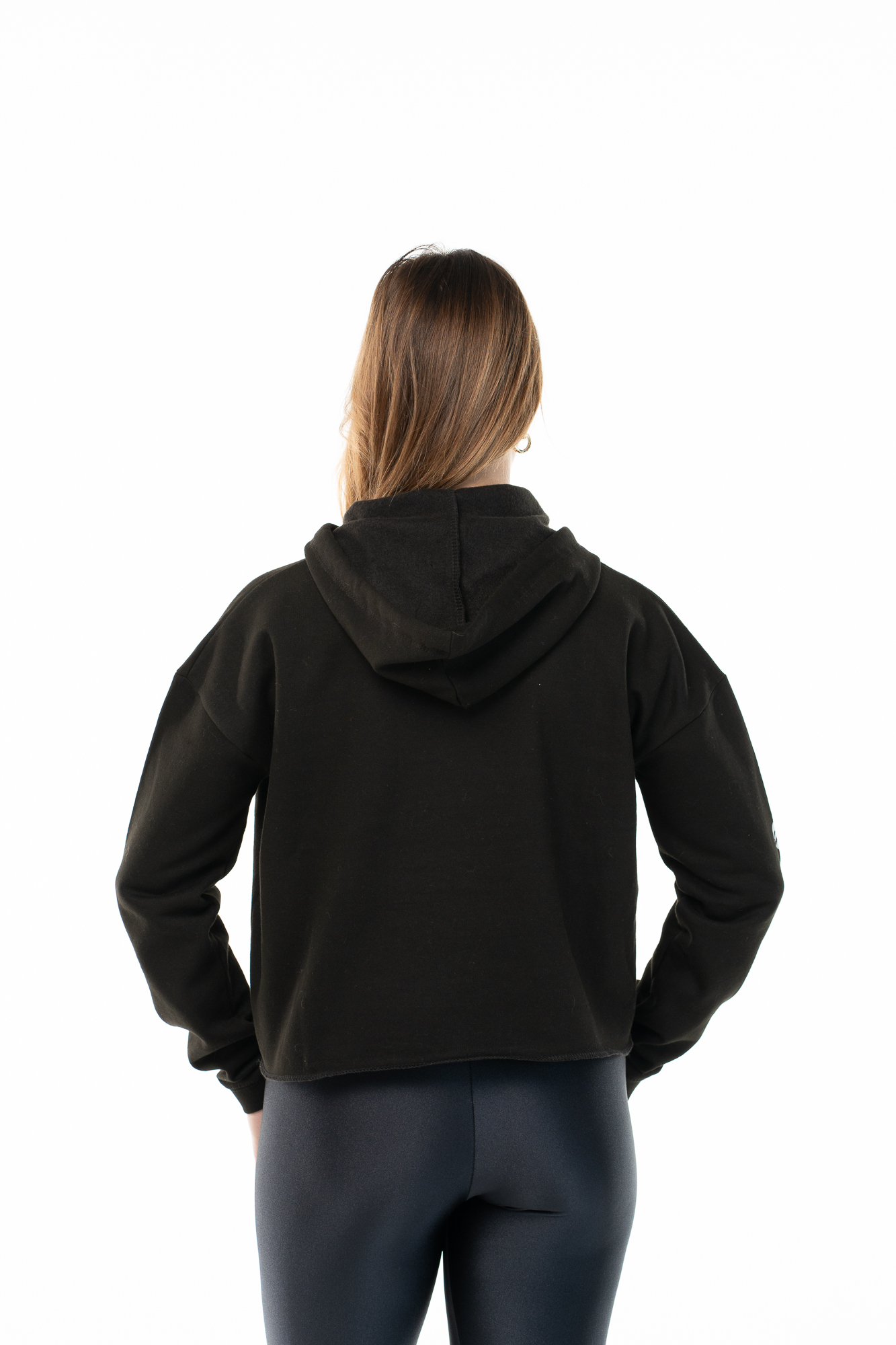 The modern cropped design adds a contemporary touch, while the front pocket provides practicality without compromising style. The back hood offers extra protection against wind and cold, making this hoodie perfect for any season.